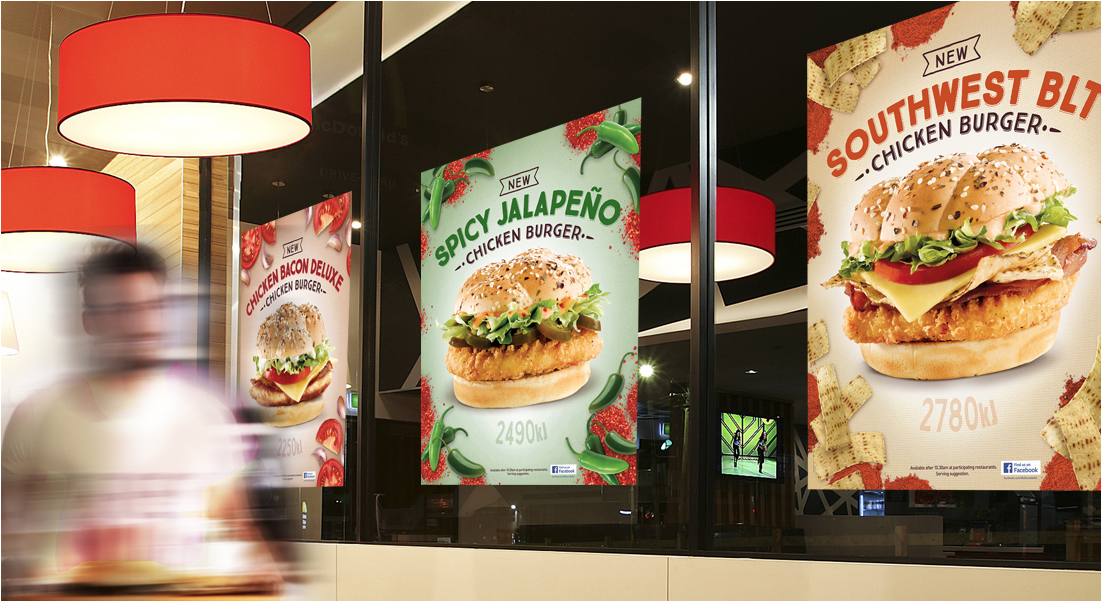 TASK: Design in-store POS materials to support the launch of McDonalds chicken burger range.