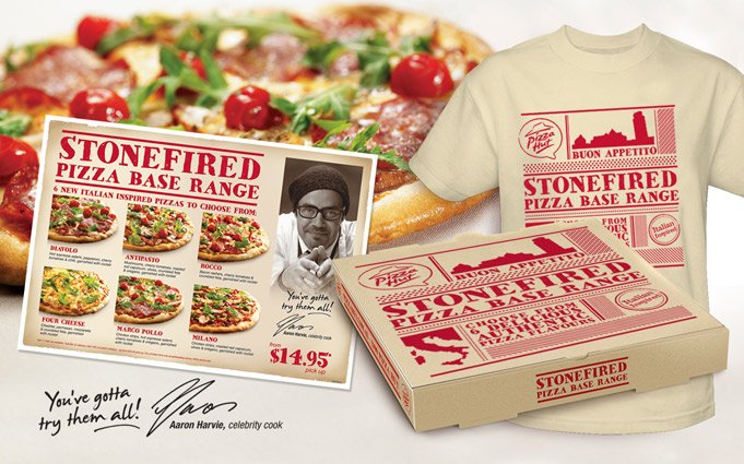 TASK: Design a suite of materials to promote PIzza Hut’s new Stonefired Pizza range.