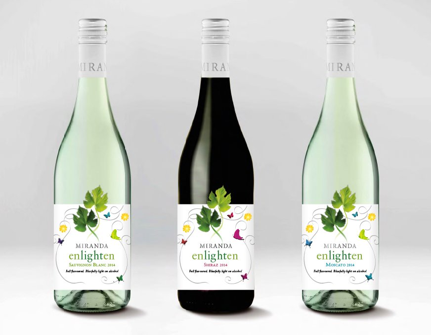 Labels for a range of lower alcohol wines called ‘Enlighten’.